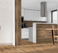 ПВХ плитка Kronospan ідеально підходить для повсякденного життя. Підлога цього виробника має високі зносостійкі властивості та не вимагає спеціального догляду. Більшість декорів тоновані у світло-сірий колір, що додає їм сучасного та стильного вигляду. На такій підлозі стають вирізнішими навіть найдрібніші елементи декору. Світле забарвлення окремих декорів ламінату дозволить зробити приміщення візуально більшим. Темніші декори є практичнішими та чудово підійдуть для багатьох інтер'єрних стилів.